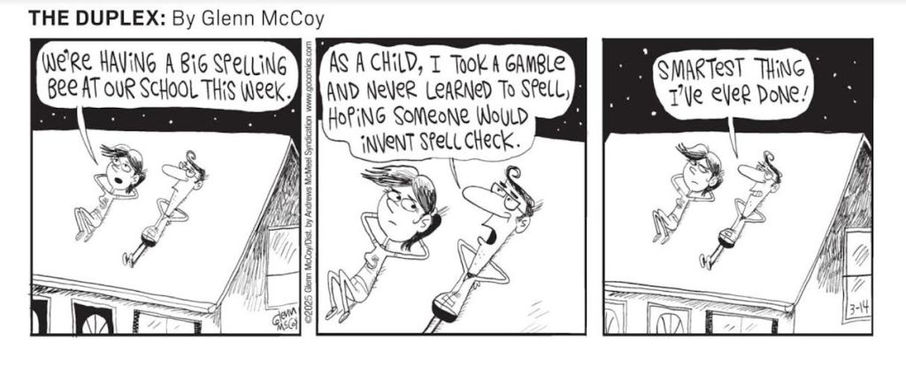 We religiously engage in a word game every morning called Connections from the NY Times. Interesting, and Mrs. T thoroughly enjoys it. What she does not enjoy is my staying around after we solve the puzzle to “help” her with the other word games she does. It drives her mad when I just blurt out possible answers, always wrong. I would due well to let you know that one of the main reasons she edits these posts is that I am incapable of spelling anything correctly. See below.