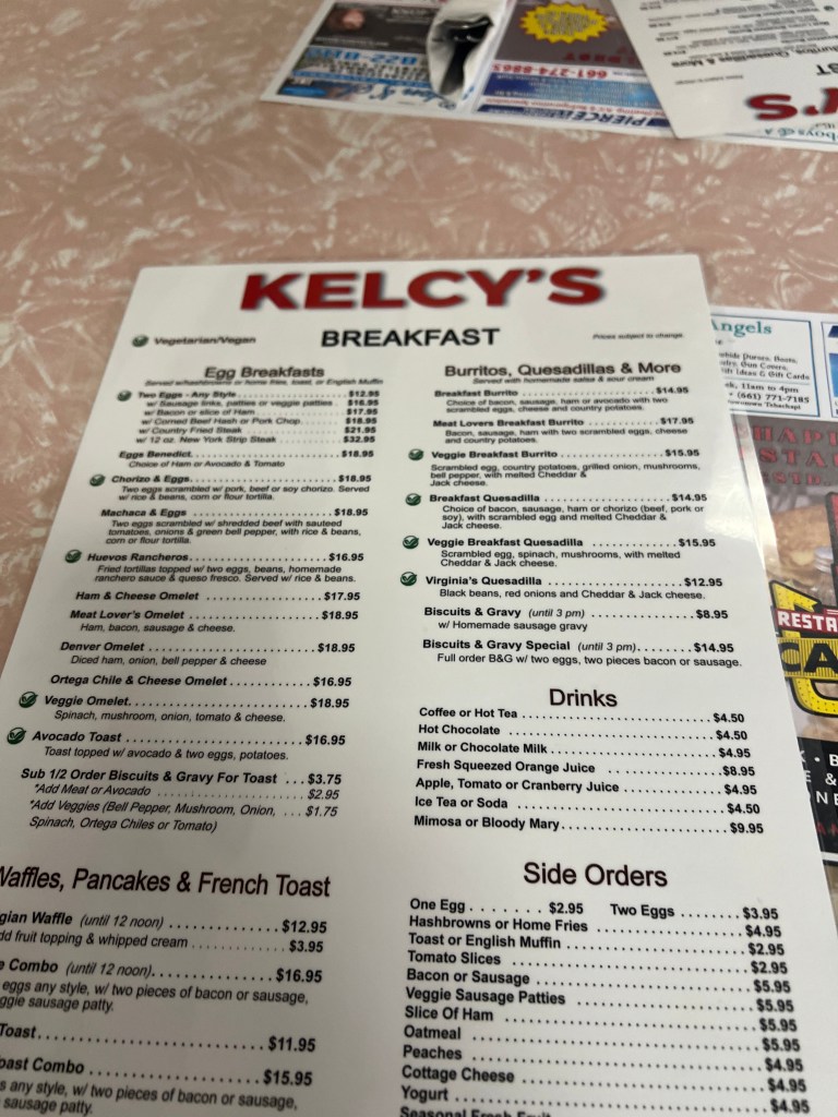 At the recomendation of John, you rememer him, we had breakfast at Kelcy’s on our way out of Tehachapi. A first class local diner. The Google pics featured chicken and waffles, my kriptonite, well that and chicken fried steak and eggs. Sadly, they did not offer this delicacy. The biscuits and gravy were also highly recommended. I will simply say life is too short for bad biscuits and gravy. Not good. But, some of the finest pancakes I have ever had. Clearly gravy man was off that day to be replaced by the pancake king.
