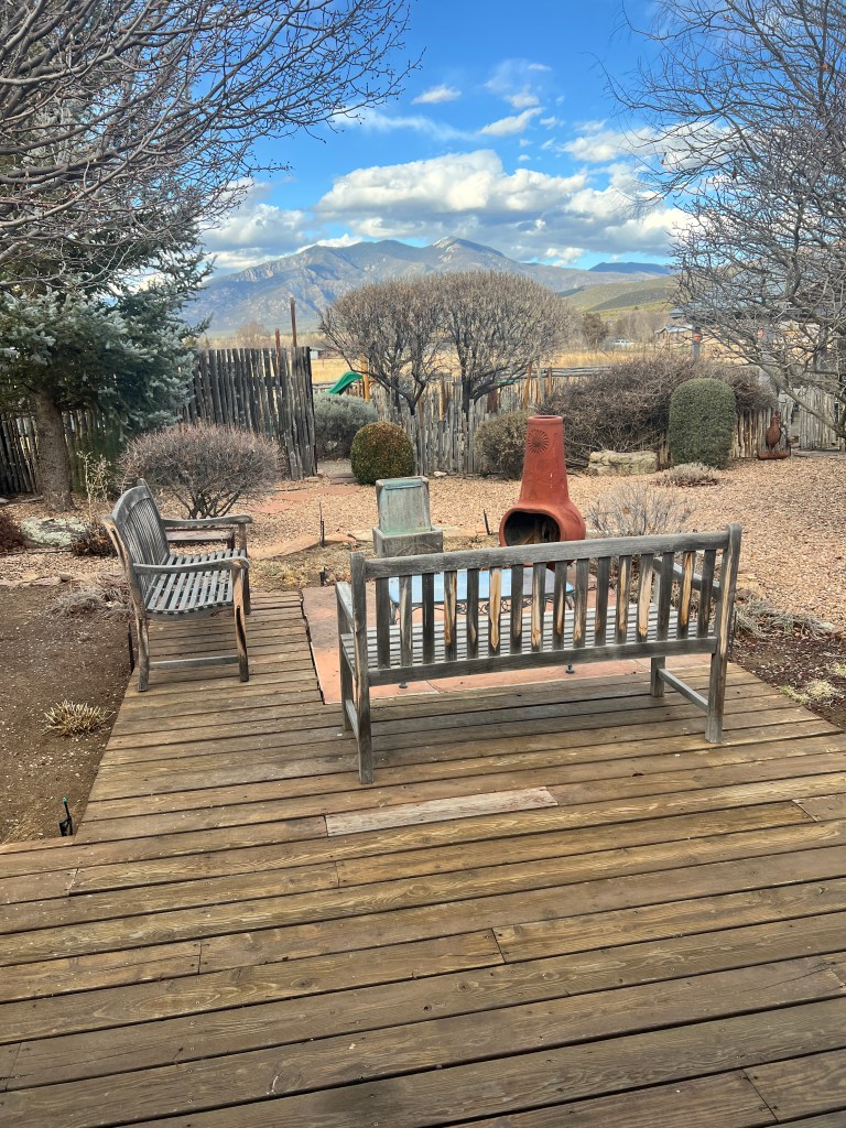 After some creative driving as well as an out of the way, outside of Taos address, we landed in a charming spot for the next four days. A quick note here about the ever impressive work of my personal travel agent, AKA Mrs. T. She has us enrolled in this thing called home exchange where we let perfect strangers stay in our home while we travel, thus amassing guest points that we use along the way. That is the situation with this amazing location. Now, home exchange, let’s talk. We walk out of our home and just pretty much leave everything as is and someone drops by and stays. It is like going through a host’s medicine cabinet but much much more! Back to our stay, it is pretty rural, with a livestock gate and all. All new adventures for this city boy.