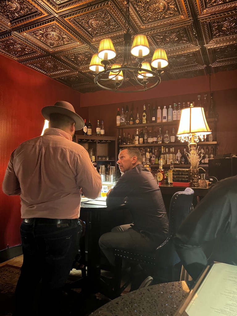 The second night there we were taken to a speakeasy by Mikey and Tobi. I thought it might be lame but it was really well done. Situated in one of the high rise hotels downtown, it occupied a guestroom with no markings whatever on the door. You made reservations and were given a secret password. Upon arrival you gave the password to the front desk and they gave you a room key. When we got up to the secret room we were greeted by a large man who checked our room key and ushered us into the dining area. Only six tables, only two seatings of 12 each night. It seems that this was the smallest and least desirable room in the hotel without an exterior view. No one ever wanted to stay in it so some big brain decided to turn it into a speakeasy!