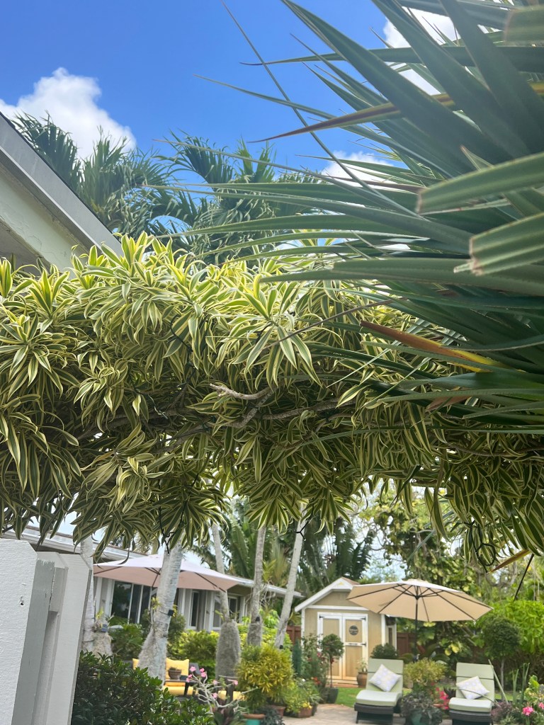 Now I will resist the temptation to put forward stereotypes a la Mitch McConnell but let me tell you, clean, manicured properties, virtually no crime, friendly people, great food and perhaps the best home exchange hosts we have ever encountered. To be honest we do not usually get to meet our HE hosts, but we were staying in the guest cottage next to the main house occupied by Harvey, his husband Bill and his ex partner Michael… not that there is anything wrong with that! Welcoming, warm, helpful and big fun. We hosted a BBQ with Mikey, his wife Tobi and Michael while Harvey and Bill were away for the weekend. The cottage was small and chock-full of objects d’art, lovely posters and drawings (the naked men subject matter did not faze me in the least being the oh so secure male that I am with a noticeable bent towards metro sexuality). The kitchen, on the other hand, was a challenge to cook in. No oven, no counters to speak of and occupying about 40 sq feet. No worries, breakfast was served outside in the nothing short of magical gardens. There were orchids everywhere, palm trees, the ever present lizards one of which was bright green and large. Never caught a picture of it but it gave Mrs. T a fright since it was a frequenter of the outdoor shower she liked to use. Here, a few garden pics…