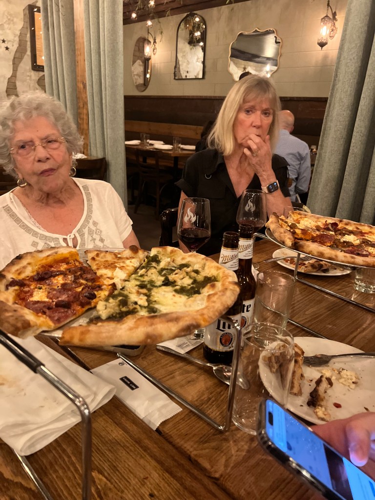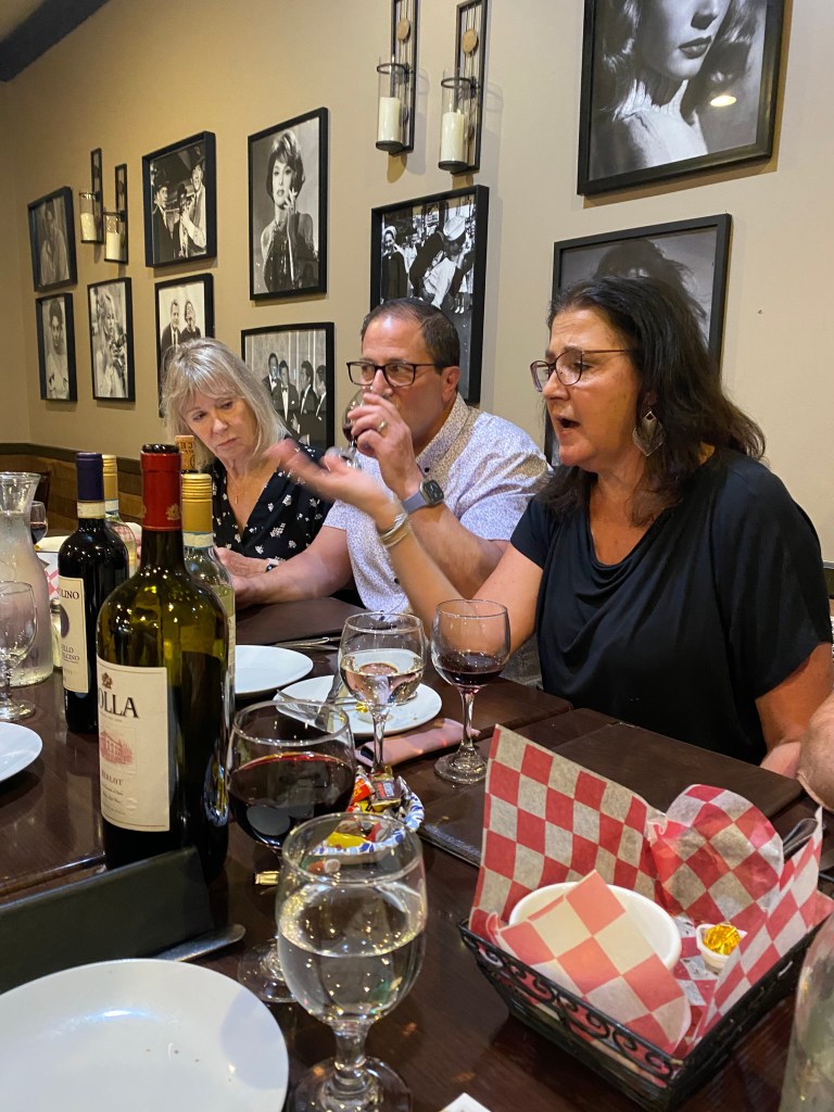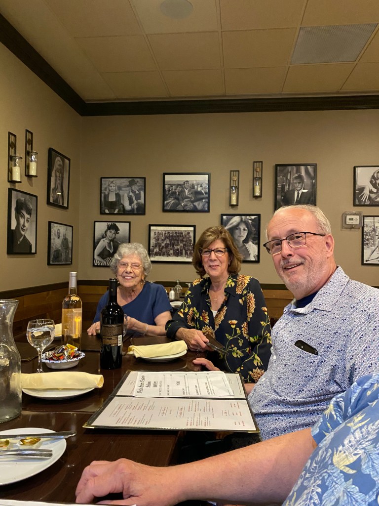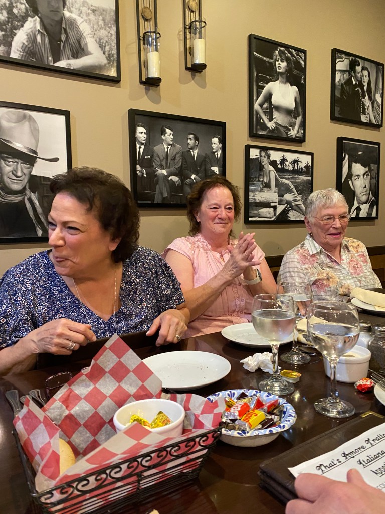 The last big event was the annual cousins’ reunion, which I catch about ever five years. Most of the cousins are female, due in part to just the way longevity works between the sexes and in part because you just can’t kill a Jersey Girl! That is not just a generalization. There was not a moment of dead air! Fortunately, the restaurant owner knew what he was dealing with and gave us the empty restaurant at 2PM, thinking we would clear out by the dinner rush… oh no, not to be. Seven pm found us in full rage, completely ignoring all the other diners who had filed in for a nice relaxing Sunday dinner. I had to finally call for everyone’s attention and herd them out of the place. I will not go into the quantity of food that kept coming out but suffice to say we could have fed the ever mentioned starving children in China in which our mothers would admonish us. I give you the Jersey Girls…