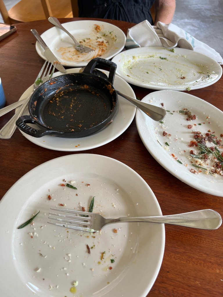 Not to mention a fine dinner at Barbuto’s. A favorite. You will see all empty plates here because I was just too excited to be back there. They bake potatoes, cut them up and then deep fry them… what can I say.
