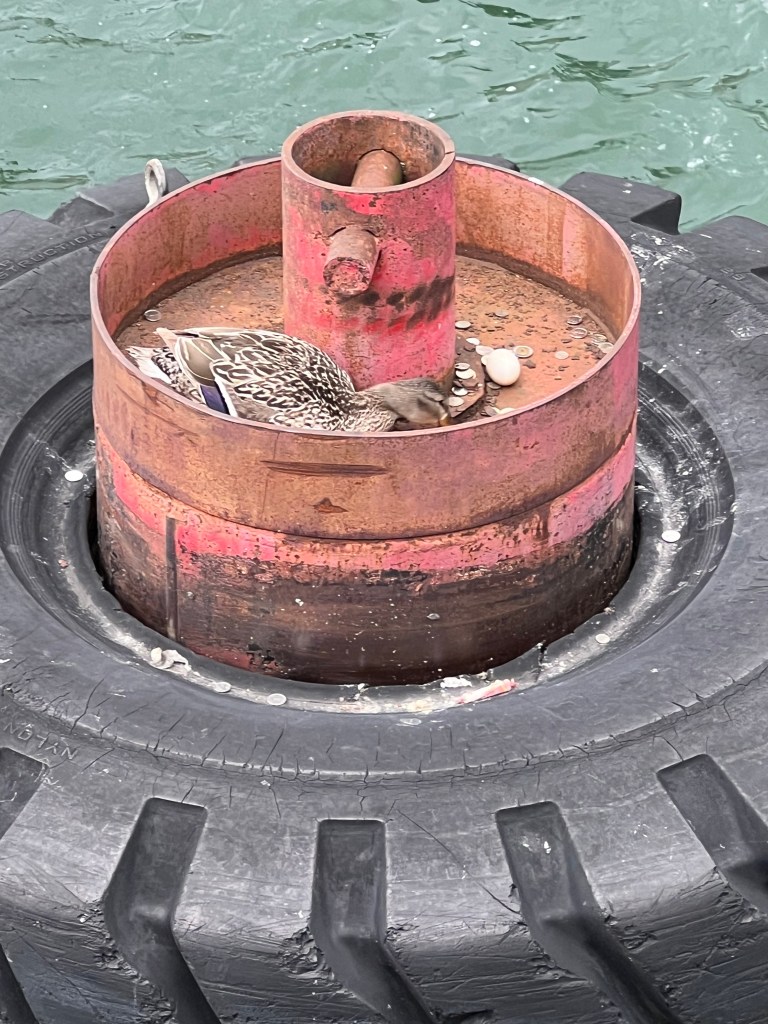 A bit of harbor life taking up residence in one of the ferry dock bumpers…